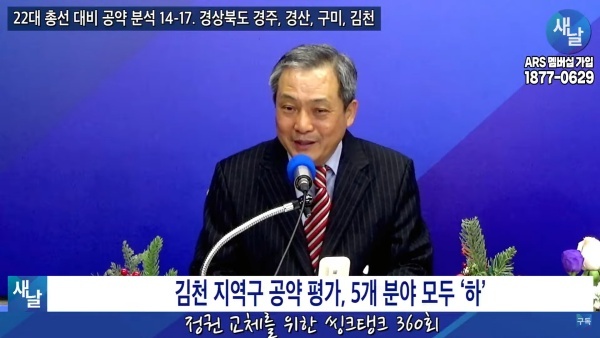12월5일(화요일) 새날 유튜브 방송은 2020년 21대 국회의원 선거에서 당선된 경상북도 경주시 김석기 의원, 경산시 윤두현 의원, 구미시을 김영식 의원, 김천시 송언석 의원 등이 제시한 선거공약을 평가했다. 이번에는 경상북도 경산시 윤두현 의원이 제시한 선거공약 평가 내용을 소개한다.