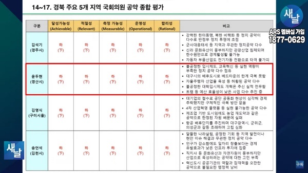 [기획-국회의원 공약 평가] ⑮새날 방송, 경상북도 경산시 윤두현 의원···달성가능성 등 5개 부문 모두 하(下)