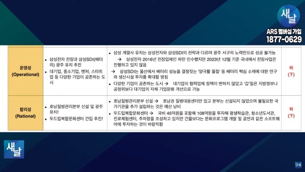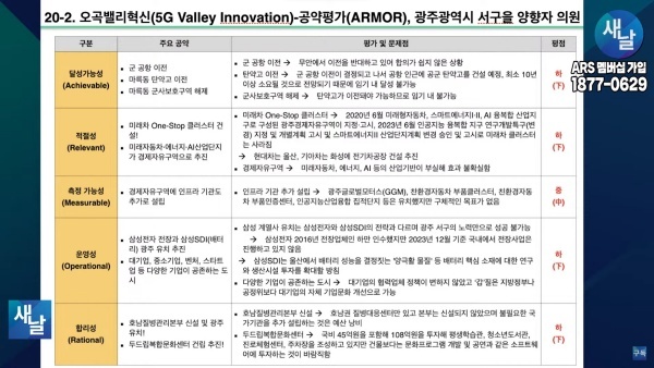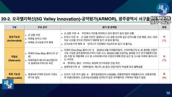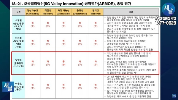 평가를 위한 방송에는 푸른나무, 이상구 원장, 민진규 소장(국가정보전략연구소) 등이 출연했다. 평가 방법은 국가정보전략연구소(국정연, iNIS)가 개발한 ‘오곡(五穀)밸리혁신(5G Valley Innovation)-선거공약’ 평가 모델을 적용했다.