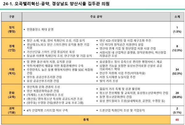 ▲ 경상남도 양산시을 김두관 의원 공약(정치/경제/사회/문화/과학(기술)) [출처=국가정보전략연구소(iNIS)]