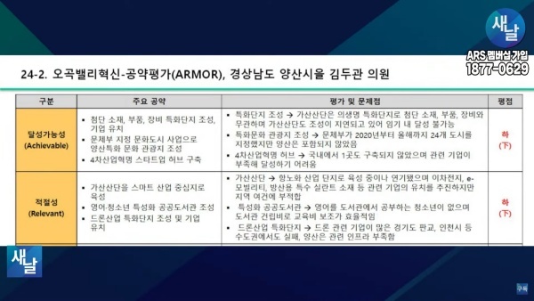 [기획-국회의원 공약 평가] 24. 새날 방송, 경상남도 양산시을, 김두관 의원···운영성 중(中) 외 4개 부문 하(下)