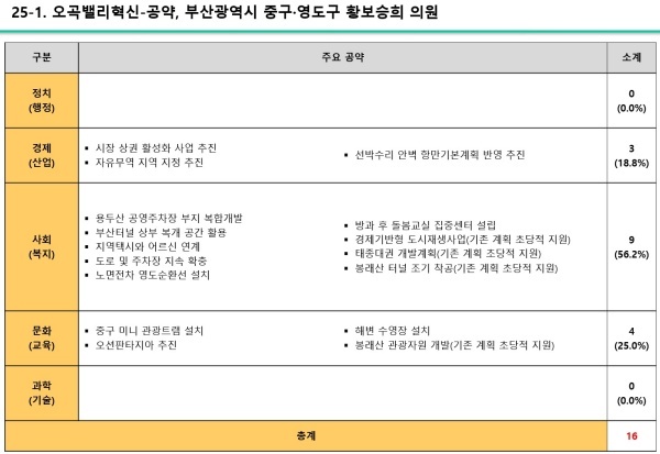 ▲ 부산광역시 중구·영도구 황보승희 의원 공약(정치/경제/사회/문화/과학(기술)) [출처=국가정보전략연구소(iNIS)]