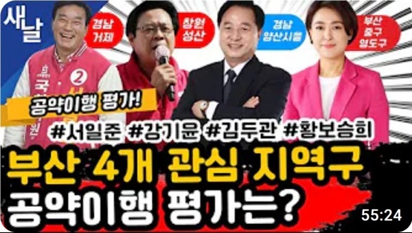 ▲ 경상남도, 부산광역시 지역구 의원 공약 방송 인트로 [출처 = 새날 유튜브]