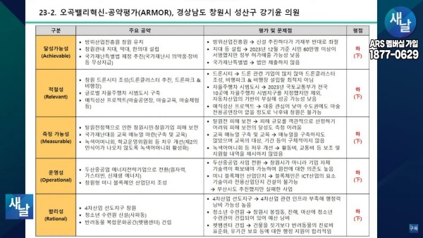 [기획-국회의원 공약 평가] (재공지) 23. 새날 방송, 경상남도 창원시 성산구 강기윤 의원···달성가능성 등 5개 부문 모두 하(下)