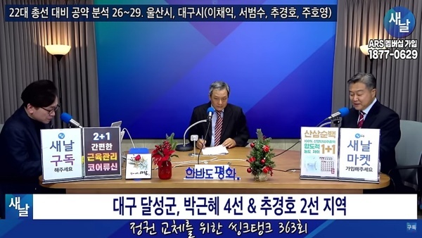 평가를 위한 방송에는 푸른나무, 이상구 원장, 민진규 소장(국가정보전략연구소) 등이 출연했다. 2020년 21대 국회의원 선거에서 당선된 대구광역시 달성군 추경호 의원이 제시한 선거공약을 국가정보전략연구소(국정연)가 개발한 ‘오곡(五穀)밸리혁신(5G Valley Innovation)-선거공약(ARMOR)’ 평가 모델을 적용해 평가했다.