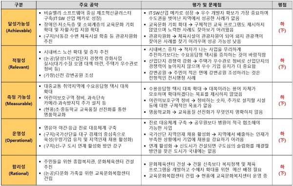 ▲ 대구광역시 달성군 추경호 의원 공약 평가 결과(달성가능성/적절성/측정가능성/운영성/합리성) [출처=국가정보전략연구소(iNIS)]