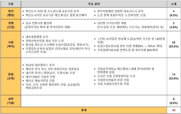 ▲ 충청남도 홍성군·예산군 홍문표 의원 공약(정치/경제/사회/문화/과학(기술)) [출처=국가정보전략연구소(iNIS)]