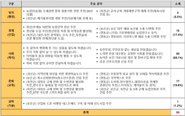 ▲ 충청북도 보은군·옥천군·영동군·괴산군 박덕흠 의원 공약(정치/경제/사회/문화/과학(기술)) [출처=국가정보전략연구소(iNIS)]