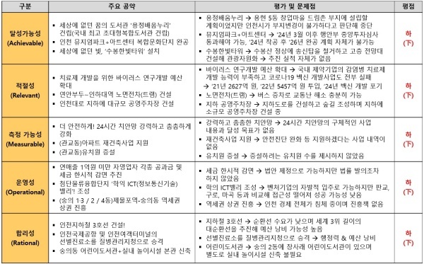 ▲ 인천광역시 동구·미추홀구을 윤상현 의원 공약 평가 결과(달성가능성/적절성/측정가능성/운영성/합리성) [출처 = 국가정보전략연구소(iNIS)]
