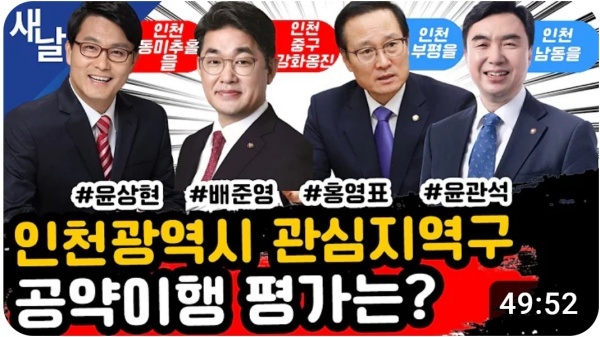 [41분 57초 이후 : 윤상현, 배준영, 홍영표, 윤관석 의원 공약 종합 평가 방송]