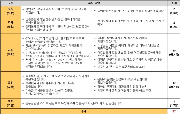▲ 인천광역시 남동구을 윤관석 의원 공약(정치/경제/사회/문화/과학(기술)) [출처=국가정보전략연구소(iNIS)]