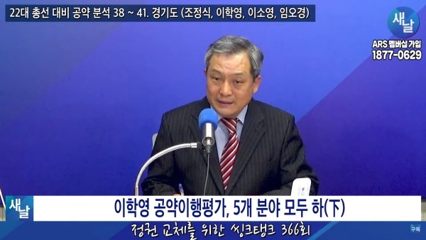 2024년01월23일(화요일) 새날 유튜브 방송은 2020년 21대 국회의원 선거에서 당선된 경기도 군포시 이학영 의원이 제시한 선거공약을 평가했다. 평가를 위한 방송에는 푸른나무, 이상구 원장, 민진규 소장(국가정보전략연구소)이 출연했다.