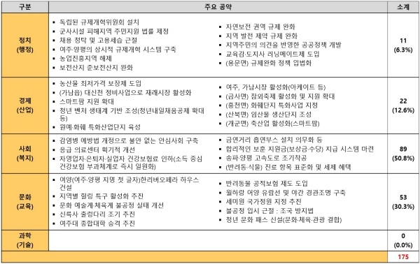 다음으로 △문화교육 공약 30.3% △경제산업 공약 12.6% △정치행정 공약 6.3% △과학기술 공약 00.0%를 각각 기록했다.