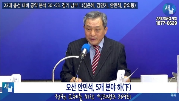 2024년02월13일(화요일) 새날 유튜브 방송은 2020년 21대 국회의원 선거에서 당선된 경기도 오산시 안민석 의원이 제시한 선거공약을 평가했다. 평가를 위한 방송에는 푸른나무, 이상구 원장, 민진규 소장(국가정보전략연구소)이 출연했다.
