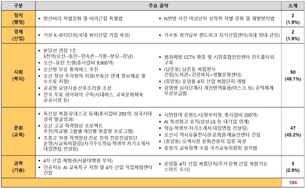 다음으로 △문화(교육) 공약 45.2% △과학(기술) 공약 2.9% △정치(행정) 공약 1.9% △경제(산업) 공약 1.9%를 각각 기록했다.