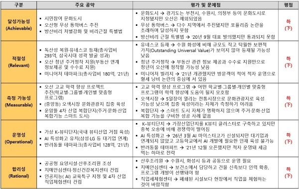평가방법은 국가정보전략연구소(국정연)가 개발한 ‘오곡(五穀)밸리혁신(5G Valley Innovation)-선거공약(ARMOR)’ 평가 모델을 적용했다.