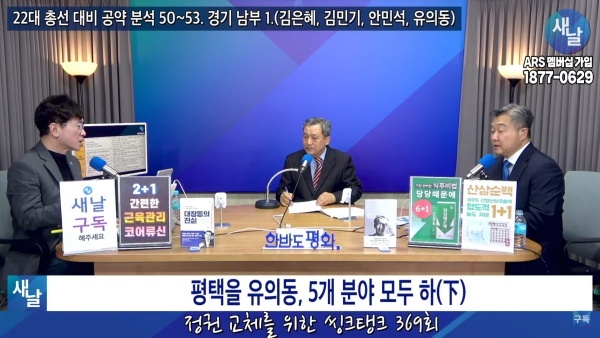 2024년02월13일(화요일) 새날 유튜브 방송은 2020년 21대 국회의원 선거에서 당선된 경기도 평택시을 유의동 의원이 제시한 선거공약을 평가했다. 평가를 위한 방송에는 푸른나무, 이상구 원장, 민진규 소장(국가정보전략연구소)이 출연했다.