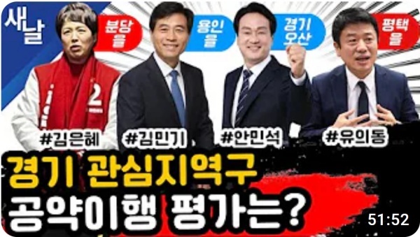 [45분 30초 이후 : 김은혜 전의원, 김민기, 안민석, 유의동 의원 공약 종합 평가 방송]