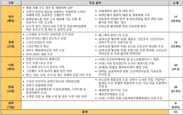 다음으로 △문화(교육) 공약 21.5% △정치(행정) 공약 18.3% △경제(산업) 공약 12.9% △과학(기술) 공약 0.0%를 각각 기록했다.