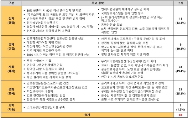 다음으로 △문화(교육) 공약 25.3% △정치(행정) 공약 13.3% △경제(산업) 공약 10.8% △과학(기술) 공약은 1.2%를 각각 기록했다.