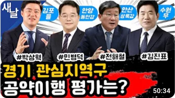 ▲ 경기도(박상혁, 민병덕, 전해철, 김진표 의원) 공약평가 [출처 = 새날 유튜브 방송]