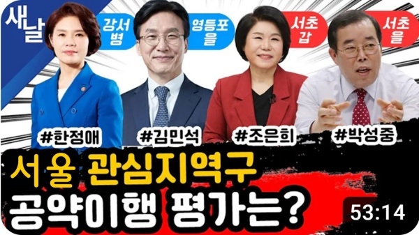 ▲ 서울시 한정애, 김민석, 조은희, 박성중 의원 공약 평가 방송