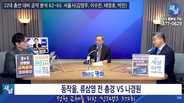 ▲ 왼쪽부터 푸른나무, 민진규 소장(국가정보전략연구소), 이상구 원장 [출처=새날 유튜브]