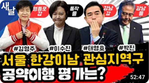 [48분 02초 이후 : 김영주, 이수진, 태영호, 박진 의원 공약 종합 평가 방송]