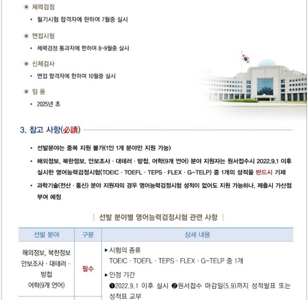 ※. 자세한 내용은 국가정보원 채용공고 사이트 확인