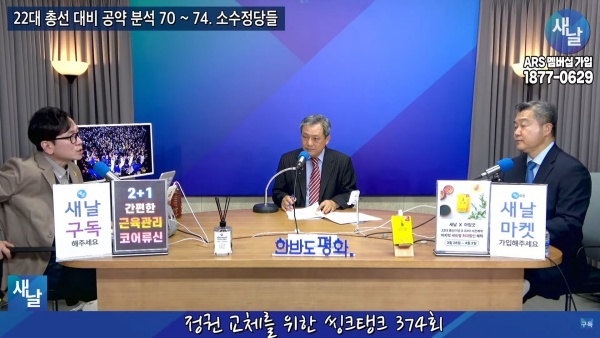 ▲ 왼쪽부터 푸른나무, 민진규 소장(국가정보전략연구소), 이상구 원장 [출처=새날 유튜브]