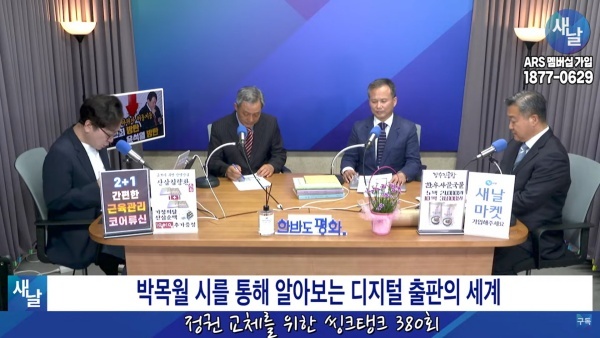 2024년 05월07일(화요일) 새날 유튜브 방송은 '박목월 시를 통해 알아보는 디지털 출판 세계'와 관련한 방송에는 푸른나무, 우정권 교수, 이상구 원장, 민진규 소장(국가정보전략연구소)이 출연했다.
