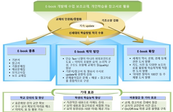 교과서를 하나 만드는데 오랜 기간과 많은 자금이 소요되는데 교과서 저자들의 의도가 교육 현장에서 제대로 반영되기 위해서는 다양한 보조 교재들이 필요합니다. 또 수시로 현실과 사례를 실시간으로 반영하여 살아 있는 교과서가 되도록 해야 합니다.