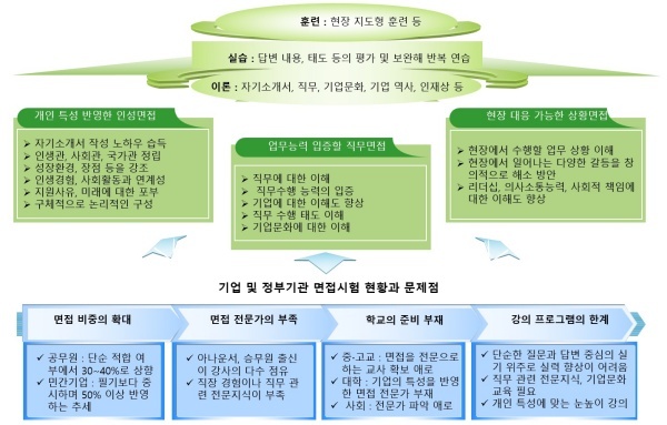 하지만 면접을 가르치는 강사들이 대부분 아나운서나 승무원 출신들이라 직장 경험이나 직무 관련 전문성이 부족하고 관련 교재도 없는 상황입니다. 또한 면접 강의 프로그램도 단순한 질의 응답 중심의 실기로 직무 관련 전문지식이나 기업문화를 알려주는 것이 필요했습니다.