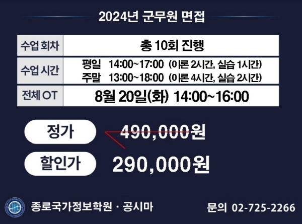 ▲ 2024년 군무원 면접 합격 대비반 안내[출처=iNIS]