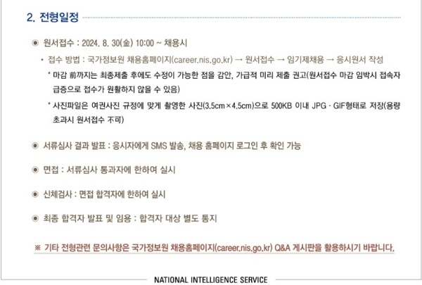 ※. 자세한 내용은 국가정보원 채용공고 사이트 확인