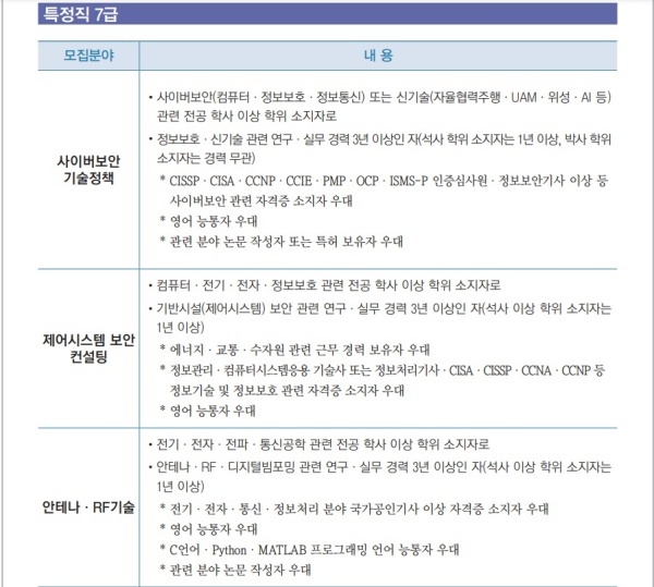 특정 7급 사이버보안 기술정책 등 28개 분야… 특정 6급 방송장비 및 통신신호처리 등 16개 분야 선발