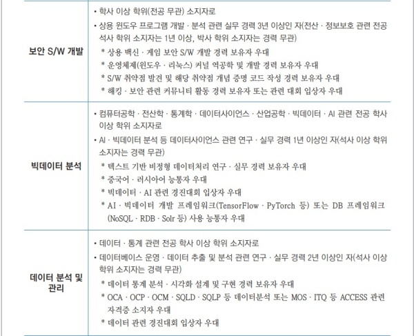 ※. CISSP·CISA·CCNP·CCIE·PMP·OCP·ISMS-P 인증심사원·정보보안기사 이상 등 사이버보안 관련 자격증 소지자 우대
