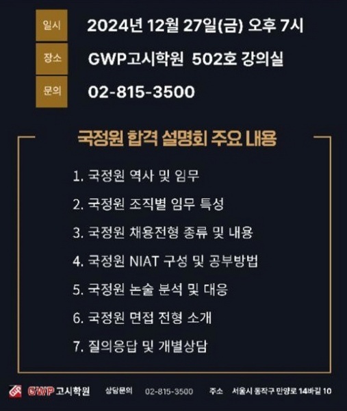 2025년 국정원 합격 설명회… 2024년 12월27일(금) 19시