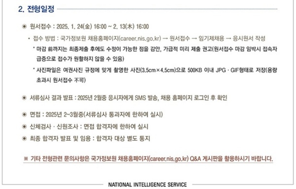 ※. 자세한 내용은 국가정보원 채용공고 사이트 확인