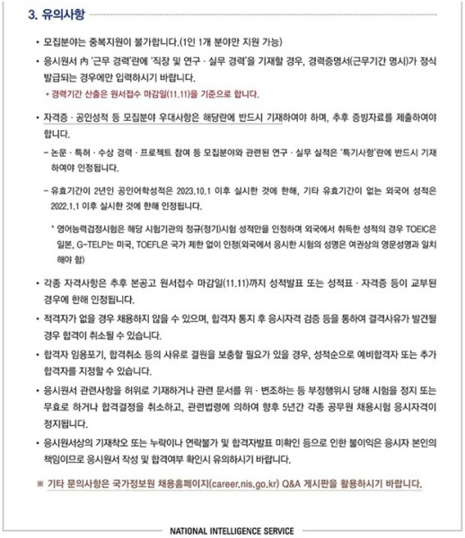 ※. 자세한 내용은 국가정보원 채용공고 사이트 확인