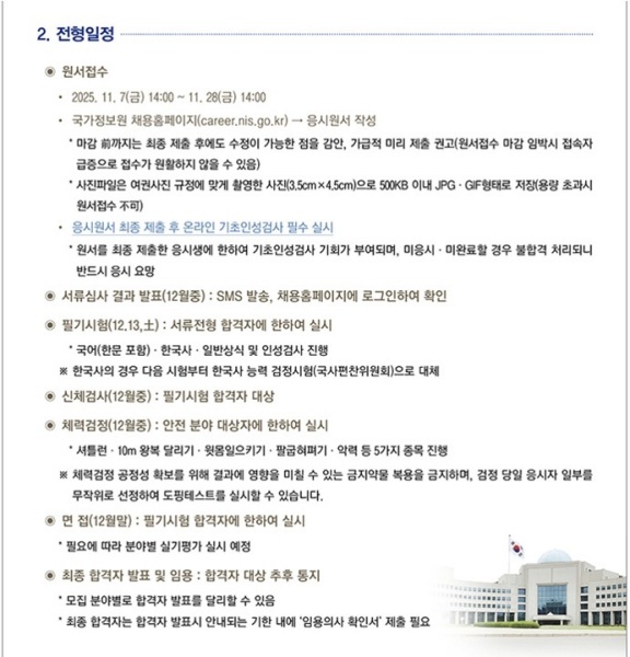 [국정원 채용 정보] 2025년도 국가정보원 일반직 9급 채용 공고[2025.11.7(금) 14:00 ~ 11.28(금) 14:00]