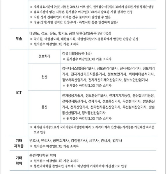 - 응시원서, 영어능력검정시험 성적, 자격사항 등 종합 평가