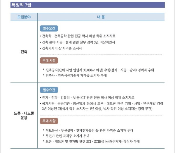 소방안전 분야 특정직 6급 및 건축, 드론·대드론 운용 분야 특정직 7급 채용