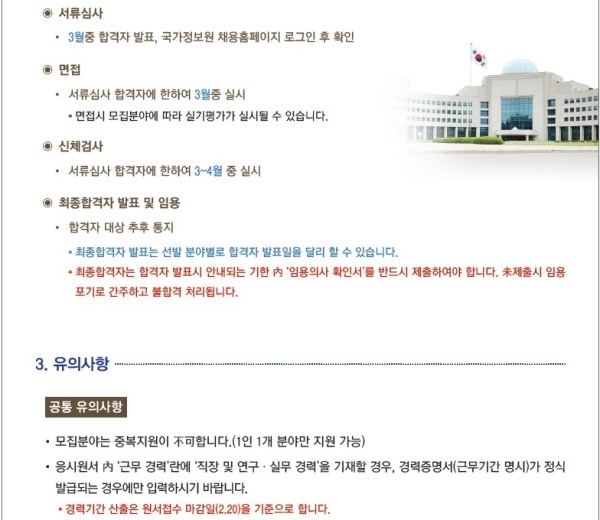 ■ 서류심사 : 3월중 합격자발표, 국가정보원 채용홈페이지 로그인 후 확인