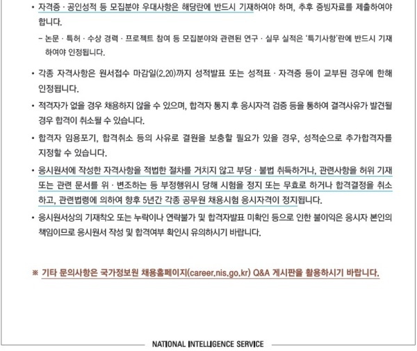 ※. 자세한 내용은 국가정보원 채용공고 사이트 확인