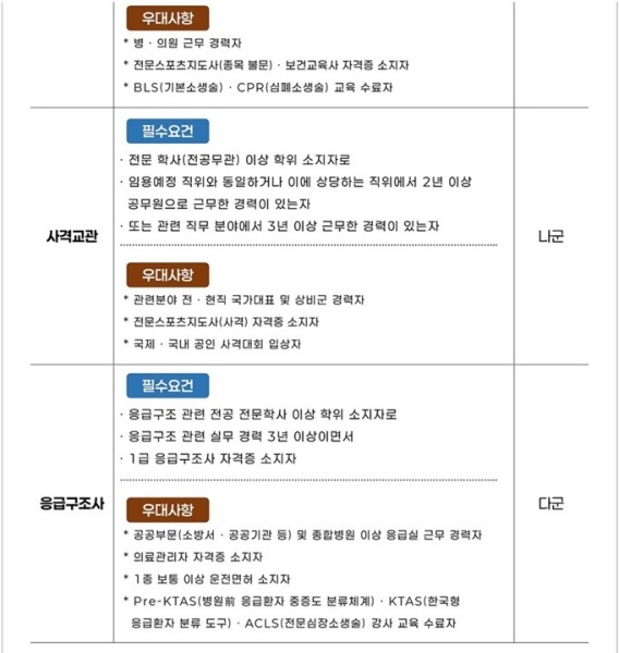 • 공공부문(소방서·공공기관 등) 및 종합병원 이상 응급실 근무 경력자