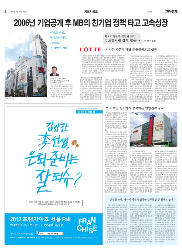 8월 22일자 신문 8면에 실린 [한국기업문화 진단과 제언 - 롯데쇼핑편]을 소개합니다.
